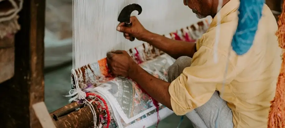 Our collection celebrates the artistry of handwoven carpets and rugs, crafted by Indian master weavers who carry forward centuries-old techniques. Every motif, pattern, and knot reflects dedication and precision, bringing together luxury and authenticity. These pieces are designed to enhance interiors while preserving the beauty of timeless textile traditions.
