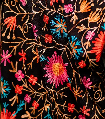 Kashida embroidery originated in Kashmir and is known for its vivid, detailed designs inspired by nature, such as flowers, birds, and landscapes. Traditionally done on wool, silk, or cotton, it lends texture, color, and cultural value to shawls, carpets, and clothing. Each piece of Kashida work exhibits exquisite handcrafting and a strong link to Kashmiri heritage, making the materials both visually appealing and culturally significant.