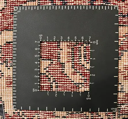 Knot density is calculated by counting the number of knots in a certain area of the carpet, usually per square inch (KPSI) or per square decimeter. This is accomplished by inspecting the back of the carpet, where individual knots are clearly visible.