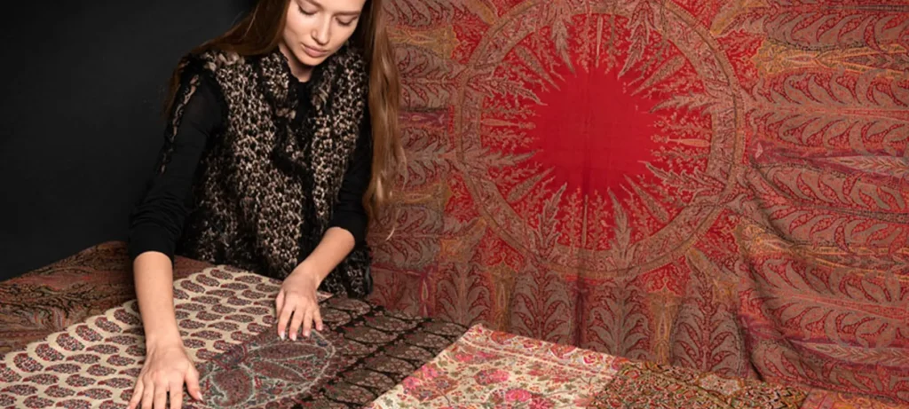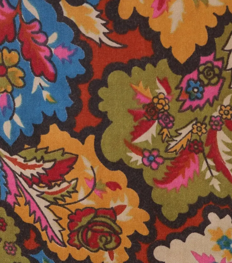 Palla scarves are defined by their highly embellished ends, which act as focal points in the pattern. While the shawl’s body is simple, the palla is filled with vibrant embroidery, stunning patterns, and occasionally clashing textures.