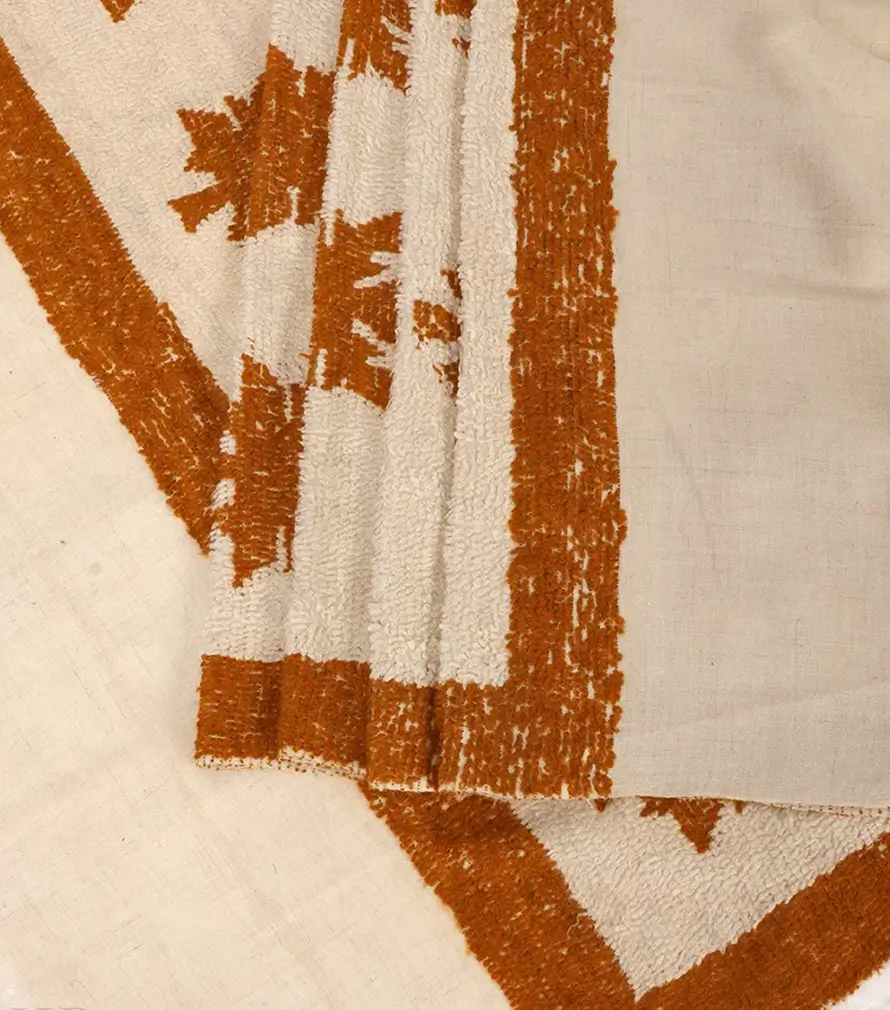 The towel weave is prized for its very soft, textured feel, which is achieved by a specific looped weaving process that retains warmth while staying breathable. It is frequently used in sumptuous wraps and blankets because of its tactile softness, making it as inviting to touch as it is attractive to look at.